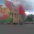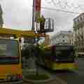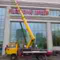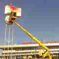 Автовышка Nissan - работа автовышки в Минске по монтажу рекламы возле Белгосцирка.