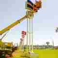 Автовышка Nissan - применение автовышки в аэропорту Минск-1 для установки декоративных конструкций.