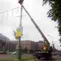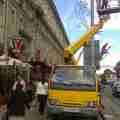 Автовышка Nissan - работа по украшению города на ст. метро Октябрьская. Малый вес автовышки Nissan не повреждает тротуарную плитку.