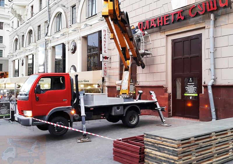 В Минске, в силу особенностей города с его плотным траффиком, многие компании обращаются с просьбой заказать автовышку в вечернее или ночное время, для того, чтобы своей работой не создавать помех транспорту или пешеходам. Для этой цели мы ввели возможность круглосуточной аренды автовышки в г. Минск - автовышка остается на объекте та же, заменяется лишь водитель-машинист через смену.