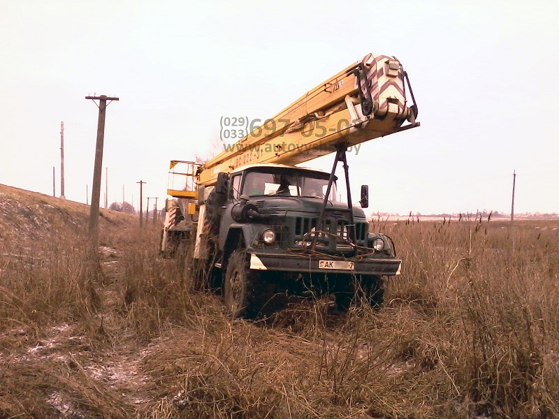 Ни одна современная автовышка не имеет такой проходимости по бездорожью, как автовышка-вездеход на шасси автомобиля ЗИЛ 6х6! Полный привод, регулировка давления в шинах, 3 ведущих моста. В условиях бездорожья на стройплощадках автовышка-вездеход абсолютно незаменима при работах на высоте. Не никакой разницы - снег, лед, грязь, болотистая местность... автовышка ЗИЛ разрабатывалась именно для этих условий. Заказать эти замечательнуые автовышки ЗИЛ 22 метра вы сможете у нас. На фото: автовышка ЗИЛ съезжает на поле для производства работ на стройплощадке здания каркасного типа.