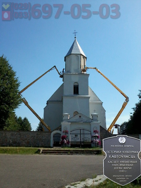 Уважаемые заказчики. Мы постоянно работаем над совершенствованием своего профессионального уровня. Среди наших заказчиков есть даже реставрационные организации. К примеру, в настоящее время наши автовышки работают на проведении реставрационных работ памятника архитектуры (действующий костел 1590 года) в пос. Деревное (Р54 Ивенец-Несвиж). Для того, чтобы соответсвовать Вашим требованиям, мы постоянно развиваемся и двигаемся вперед - обновляем парк автовышек, повышаем профессиональное мастерство, и... стараемся получать только положительные отзывы и рекомендации наших уважаемых клментов.