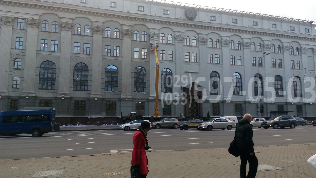 • Работа автовышки МАЗ на. Площади Победы по фасадам